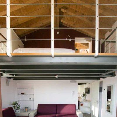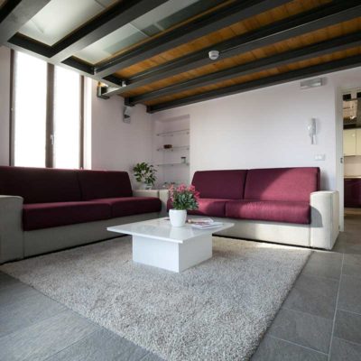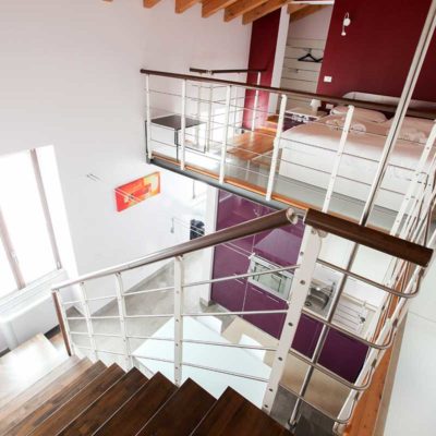 Wohnung mit Blick auf den Naviglio Grande in offener Bauweise, bestehend aus einem Schlafzimmer mit Doppelbett (180 cm) und einem Schlafzimmer mit zwei Einzelbetten, Wohnzimmer mit Schlafcouch, Küche mit Esstisch, Kaffeemaschine, Herd, Backofen, Kochutensilien.
