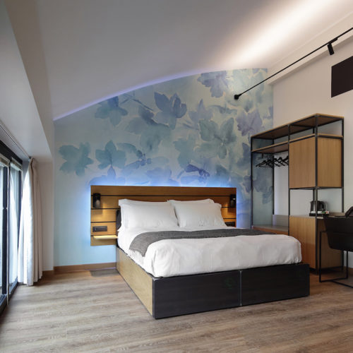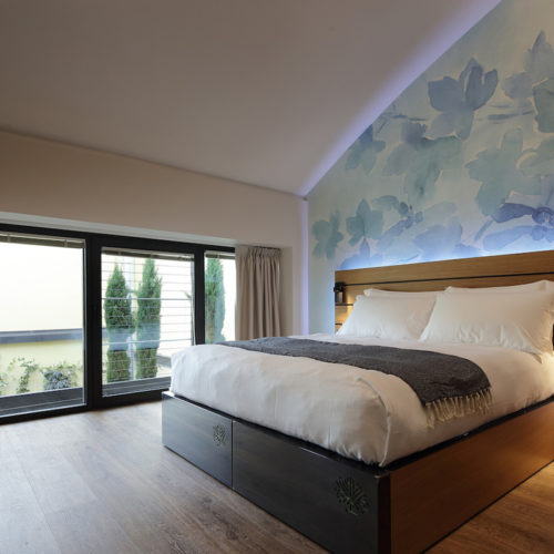 Comfortable king size bed (180 cm) with topper and double pillows.