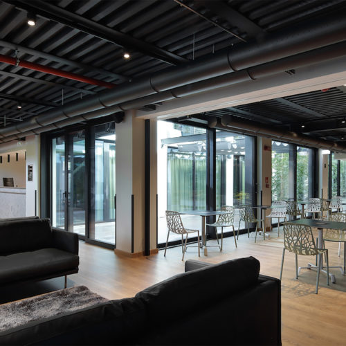 Nous avons délibérément décidé de conserver la figure à double voûte typique des entrepôts industriels, afin de maintenir le lien historique avec la zone, tout en donnant une nouvelle vie et une nouvelle lumière aux volumes intérieurs et extérieurs.